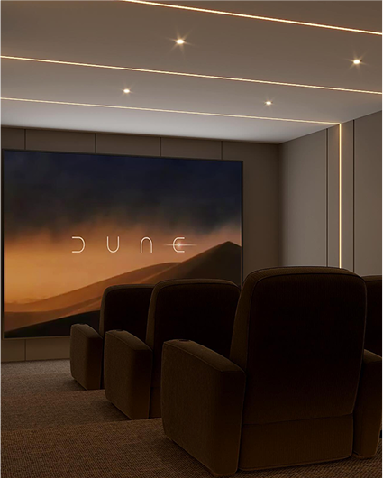 The curtain never falls when the theatre is yours. Meridian Home Cinemas creates private theatres built entirely around you — precise in design, rich in detail, and effortless in experience. From the first sketch to the final seat, every element reflects your taste and lifestyle, resulting in a space where every film feels like a premiere, every night an event, and every moment a true celebration of home cinema.
